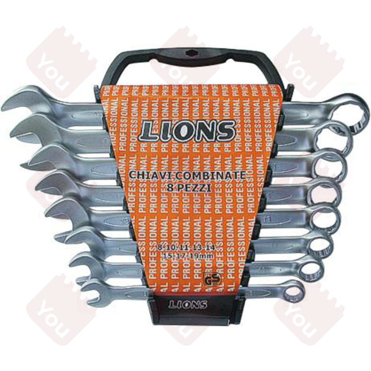 Chiavi combinate in acciaio cromo vanadio. Serie 8 pz mm 8-10-11-13-14-15-17-19