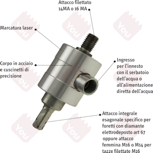 Per forare con frese mediante l'utilizzo dell'acqua. Ideale per forare ad umido marmo, granito, gres porcellanato, vetroresina, fragranite