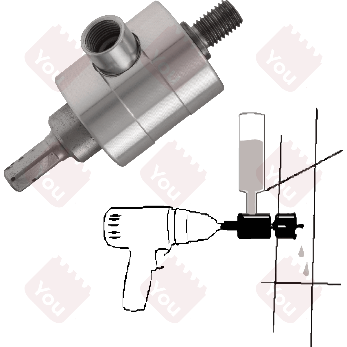 Acquaflux (articolo 67AF) consente di forare con frese a tazza o foretti mediante l'utilizzo di acqua. Ideale per forare ad umido marmo, granito, gres porcellanato, vetroresina, fragranite con foretti con diamante elettrodeposto (articolo 67). Acquaflux è una soluzione professionale per allungare la vita degli utensili e ottenere risultati perfetti a ogni foro.